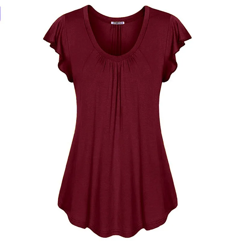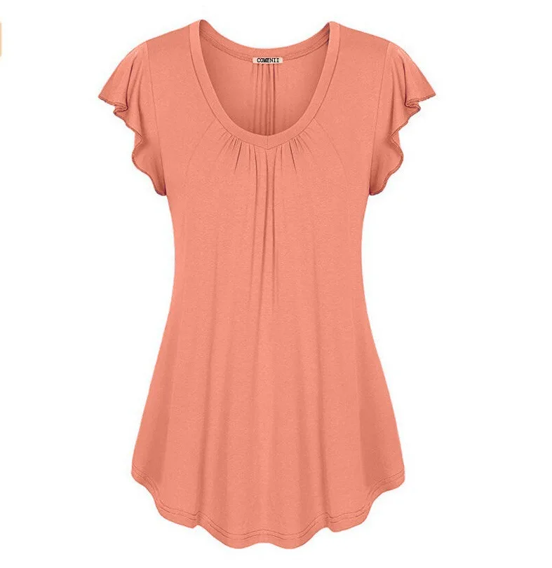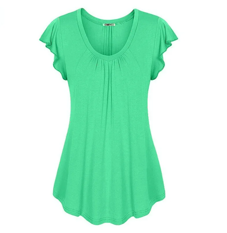 2019 new women's spring and summer solid color lotus leaf sleeve short-sleeved T-shirt womens clothing