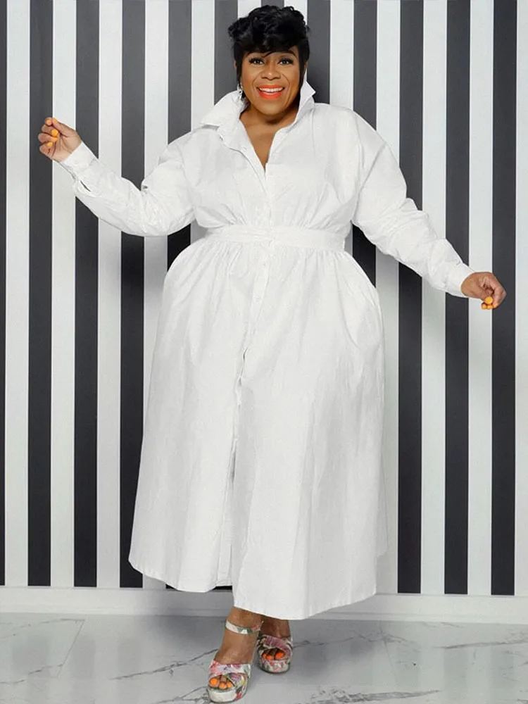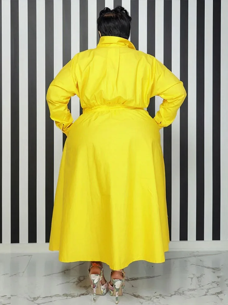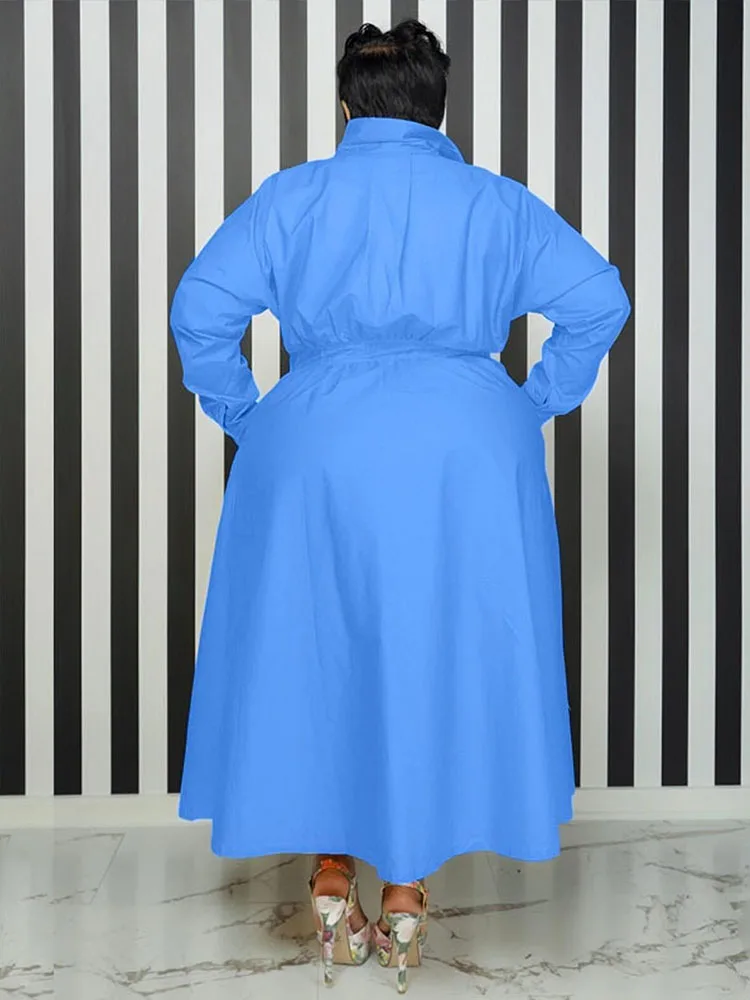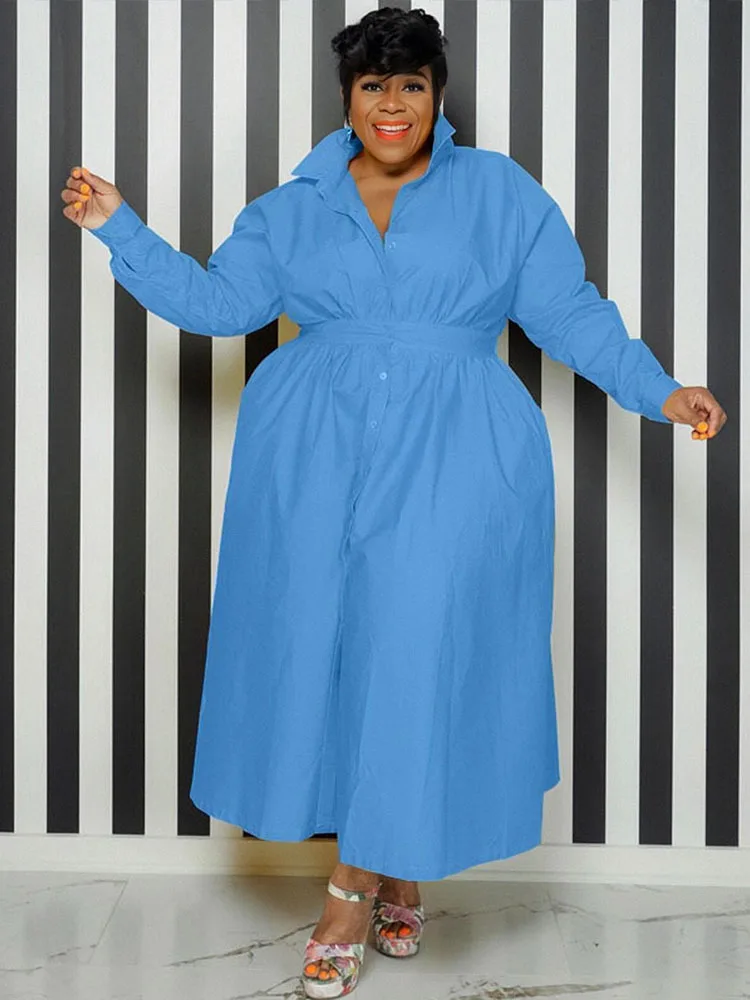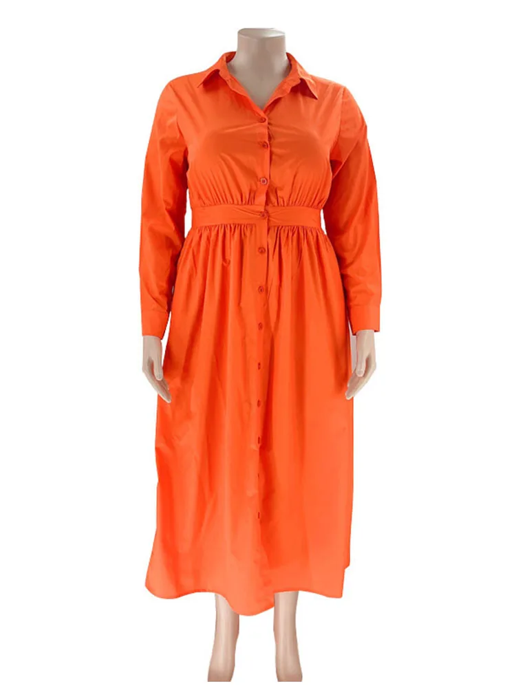 Elegant Casual Women's Dresses Korean Style Solid Color Long Shirt Dress Female Loose Plus Size Dress Wholesale Dropshipping