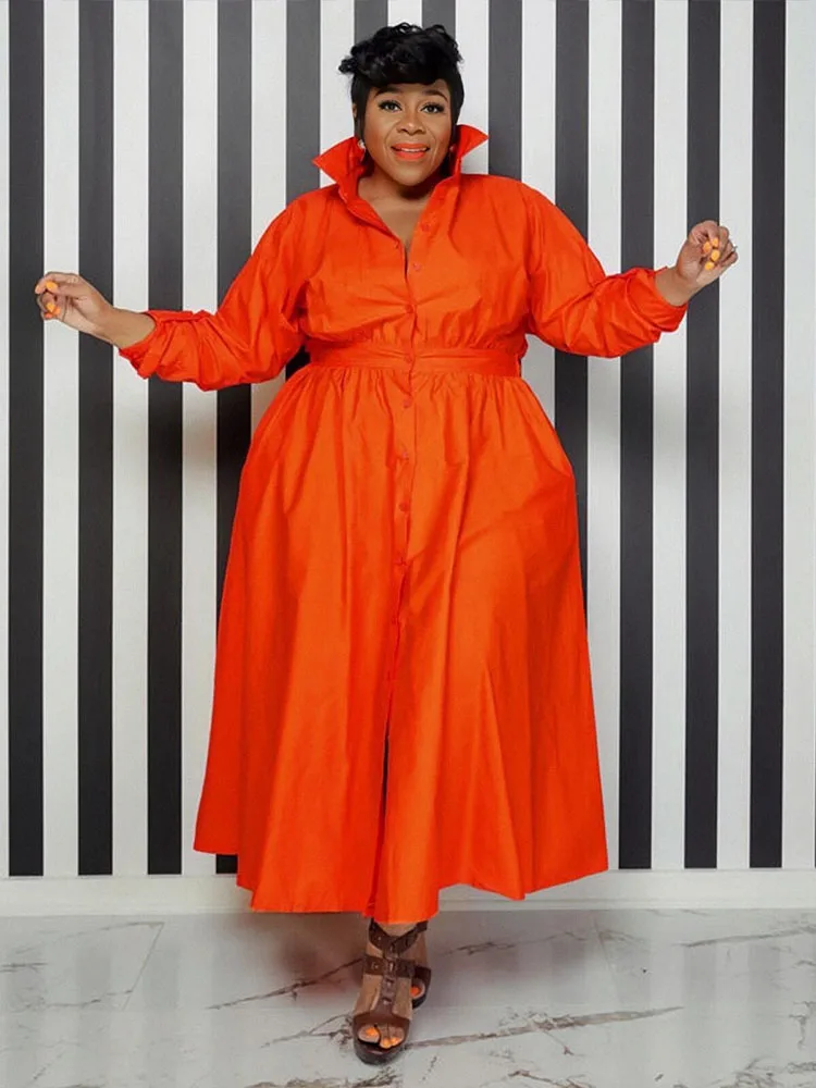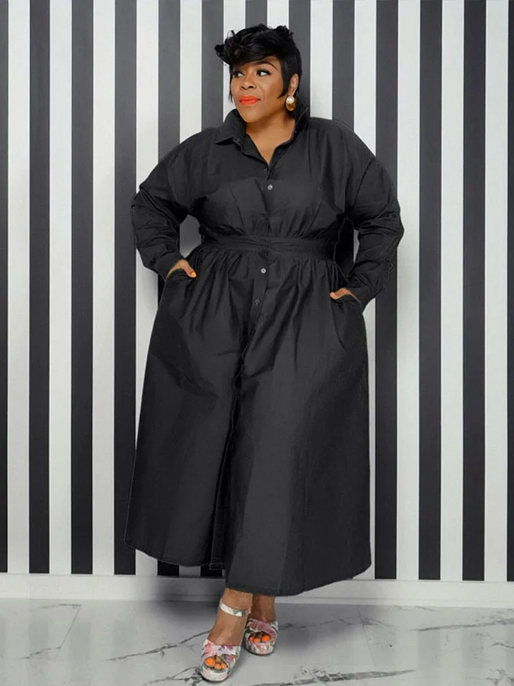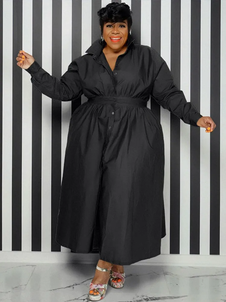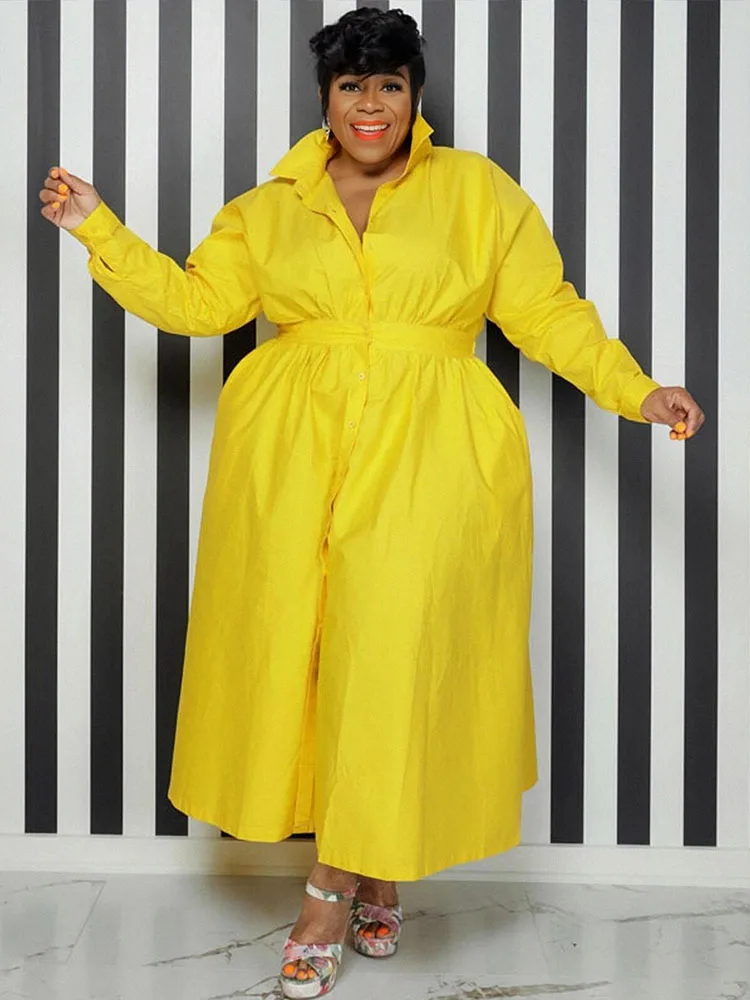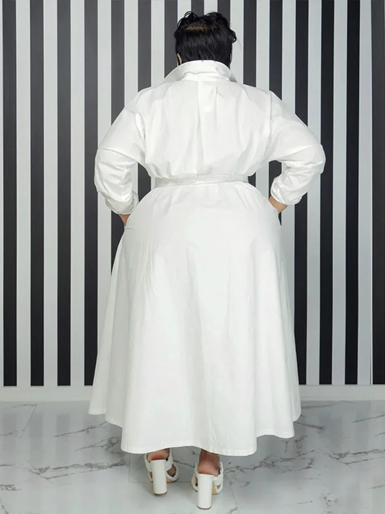 Elegant Casual Women's Dresses Korean Style Solid Color Long Shirt Dress Female Loose Plus Size Dress Wholesale Dropshipping