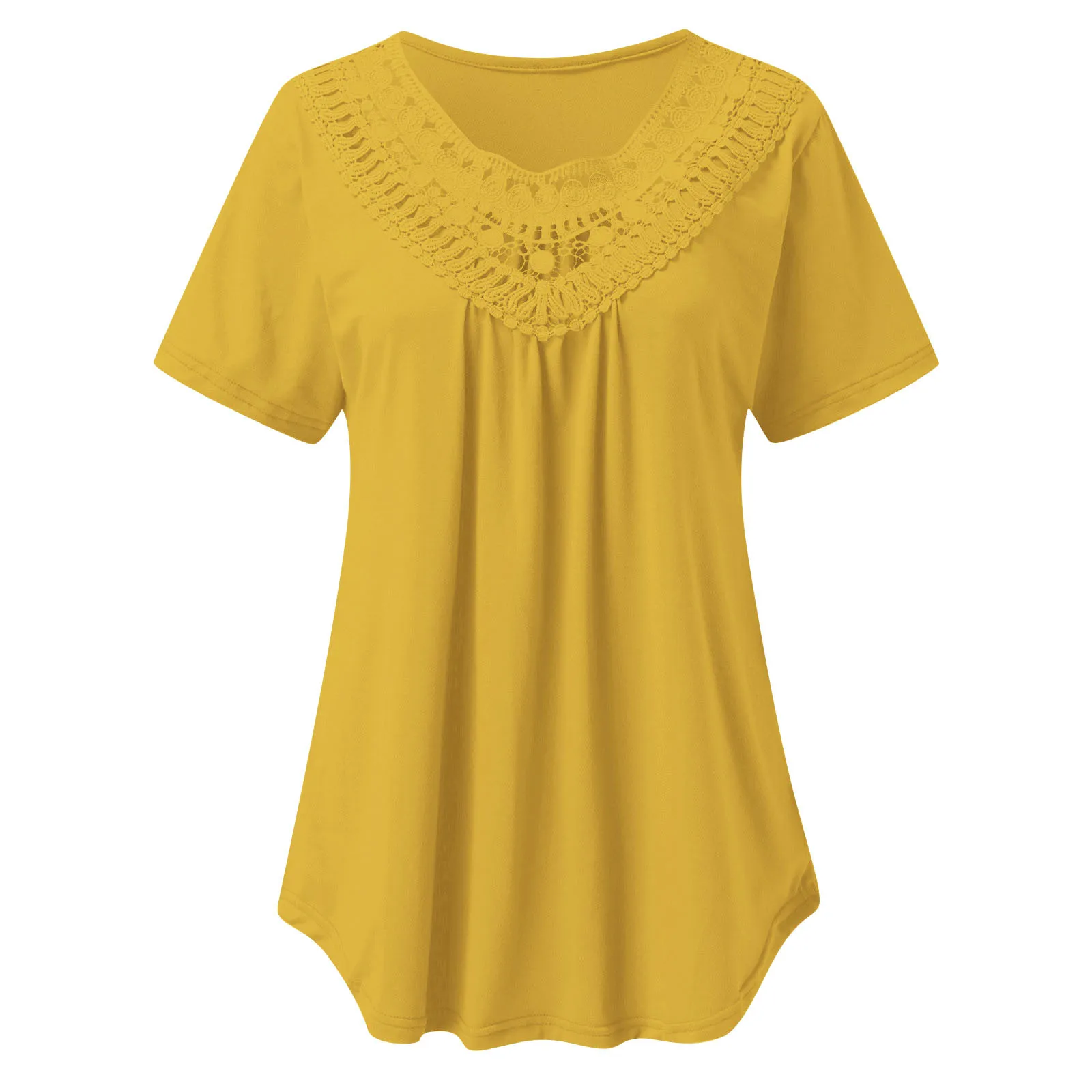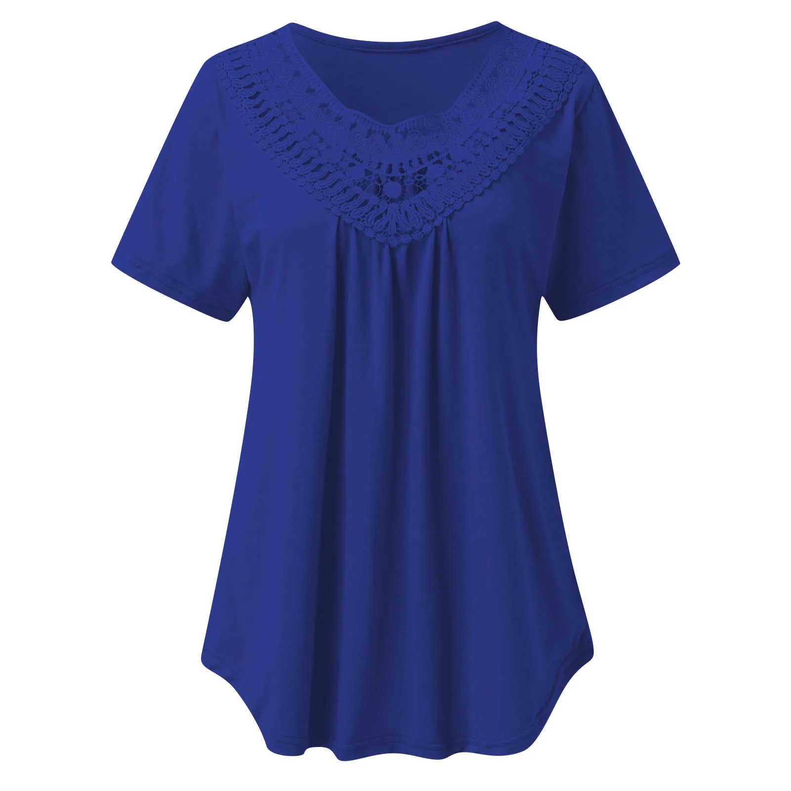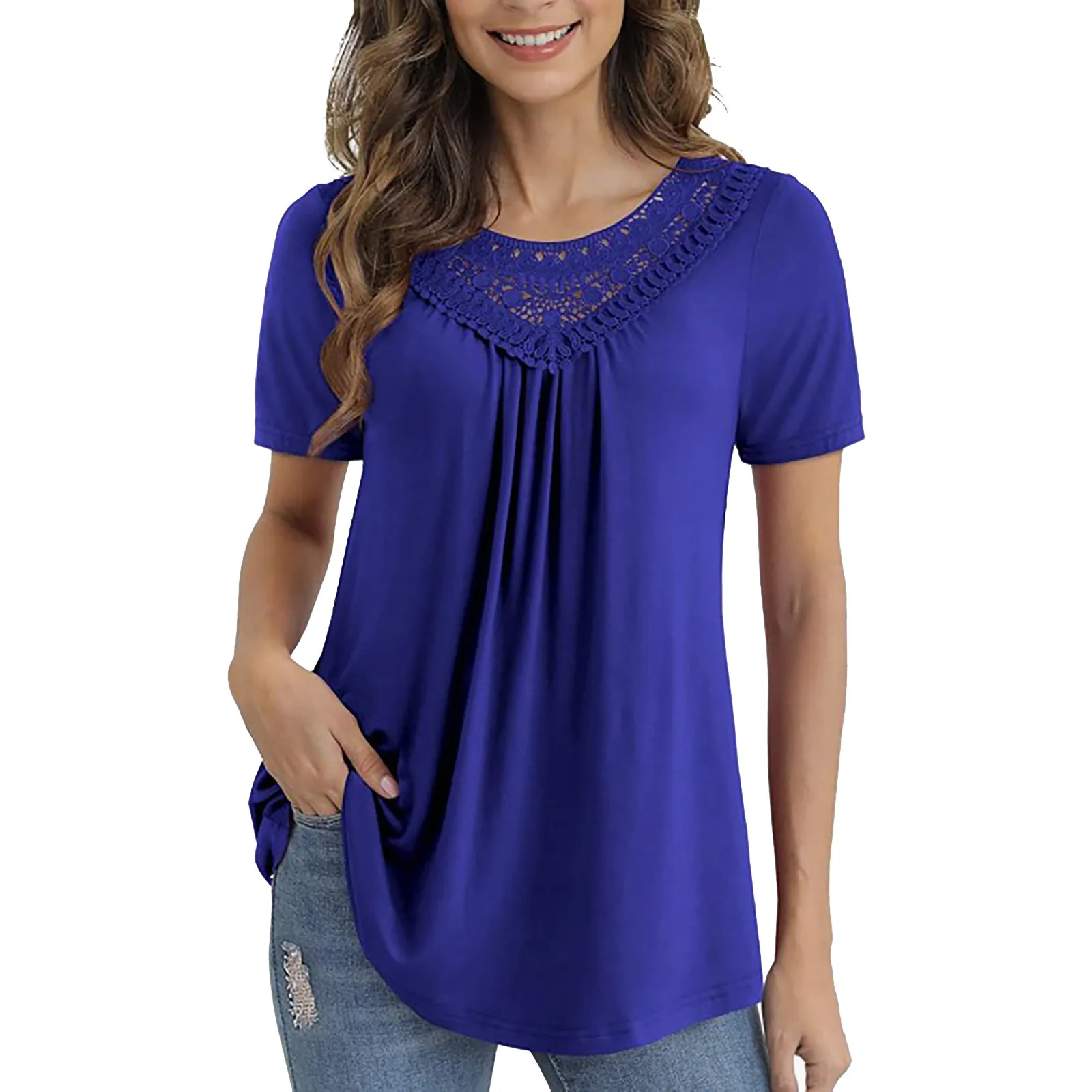 Ladies Tunics Short Sleeve Women Plus Size Summer Casual Lace Shirts Round Neck Short Sleeve Dressy Blouses For Women Plus Size