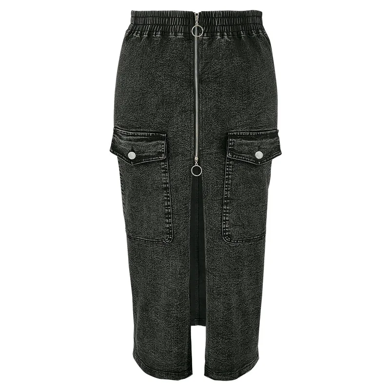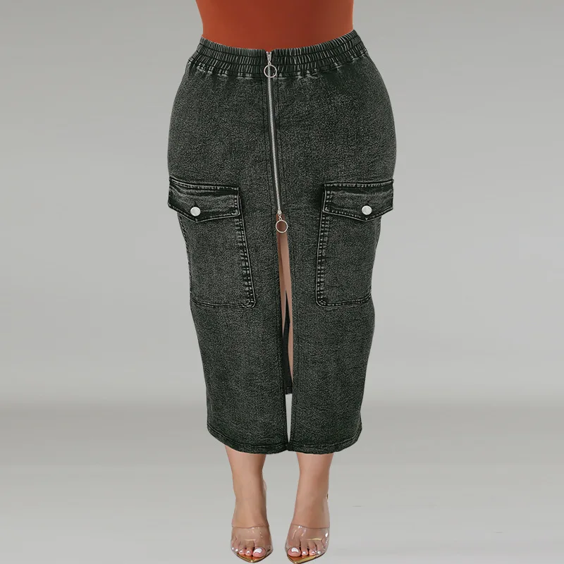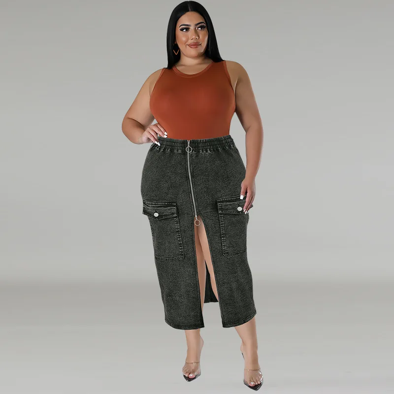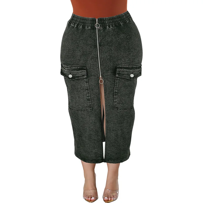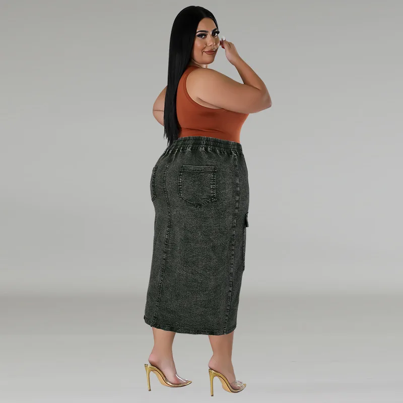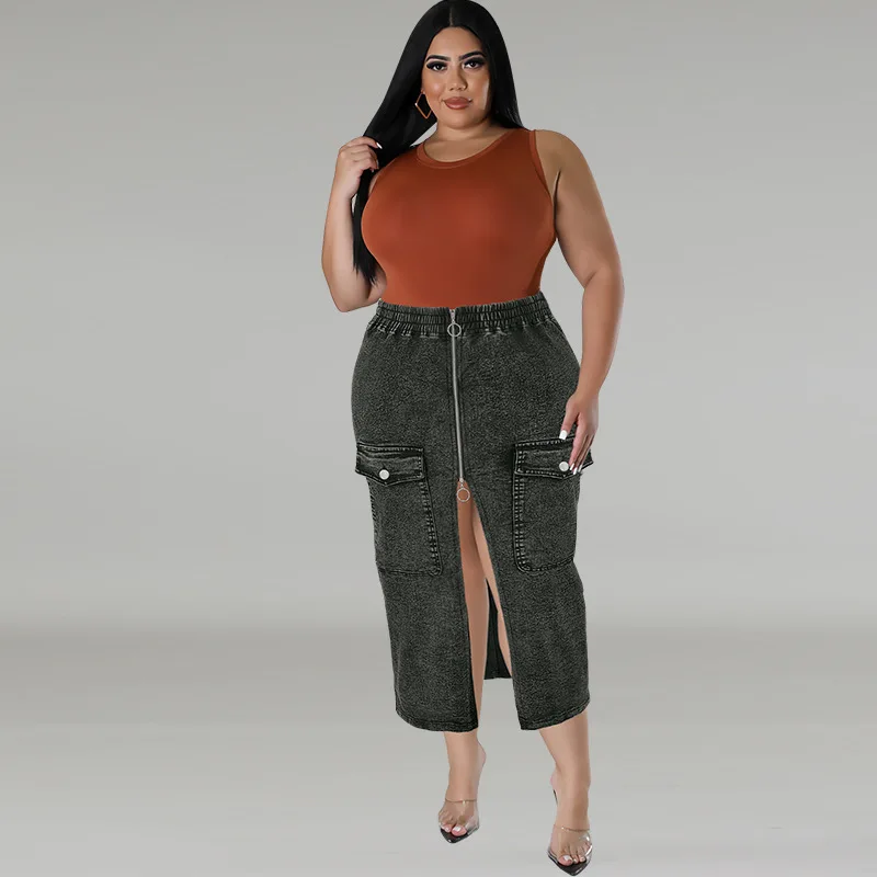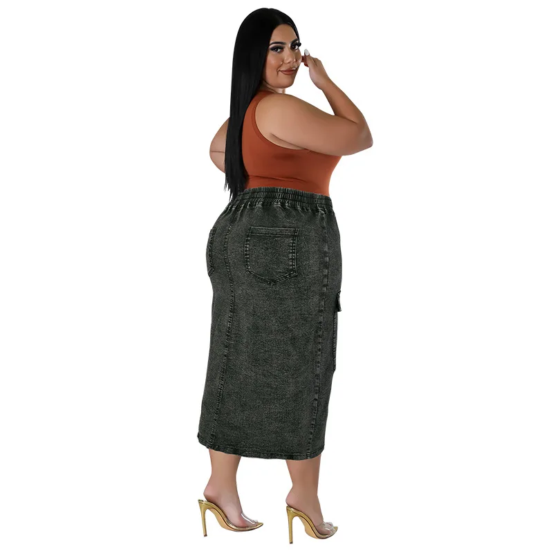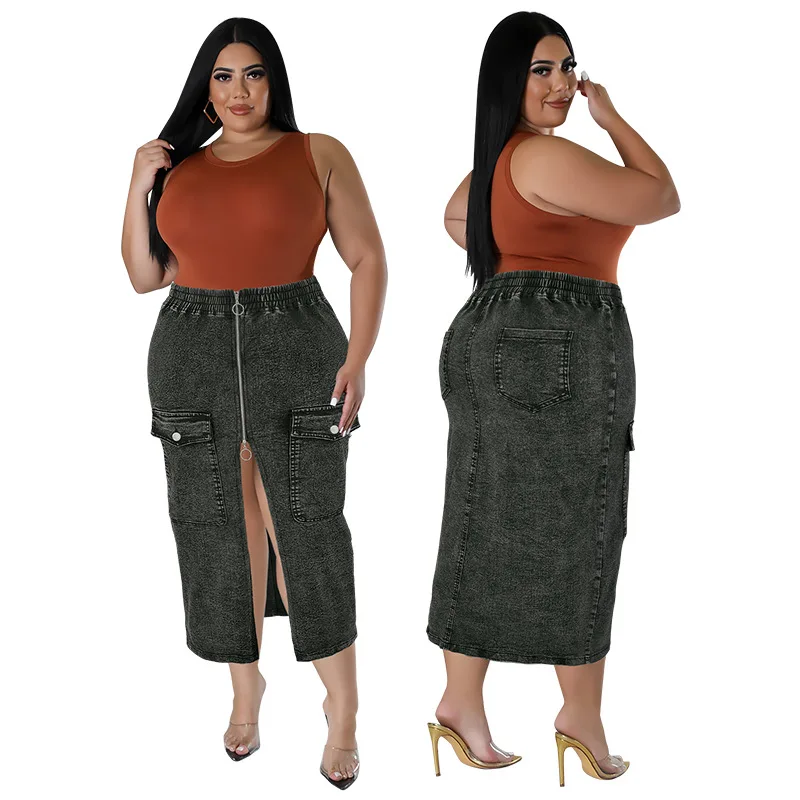 Summer New Plus Size Clothes High Waist Slit Denim Skirt For Women Washed Retro Pencil Skirt Hip-covering Straight Long Skirt