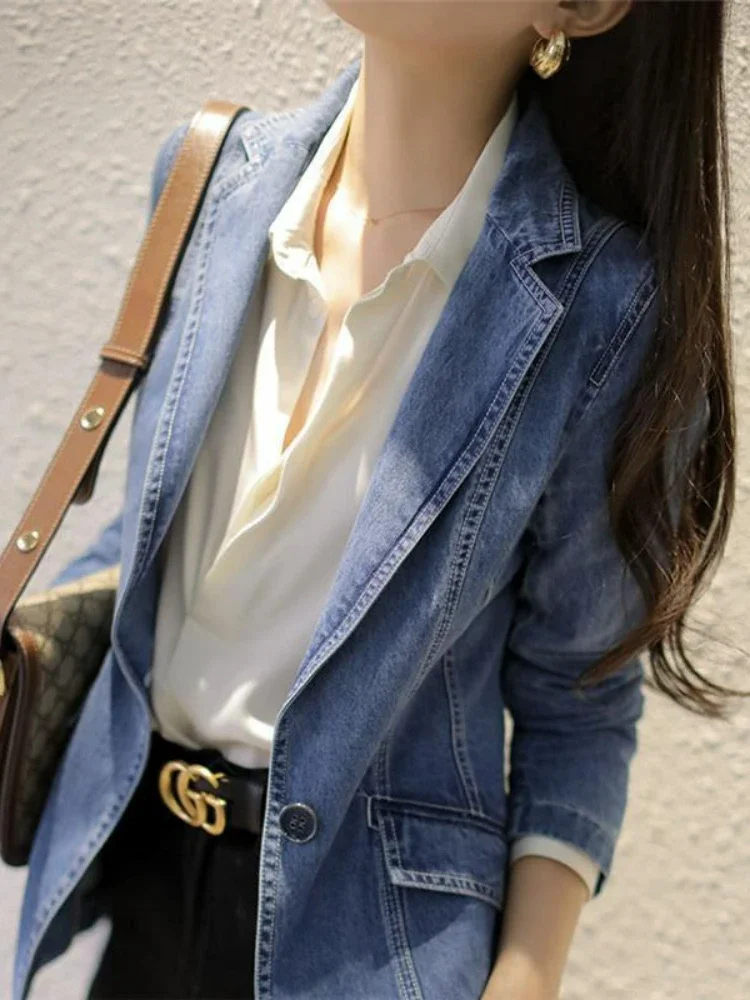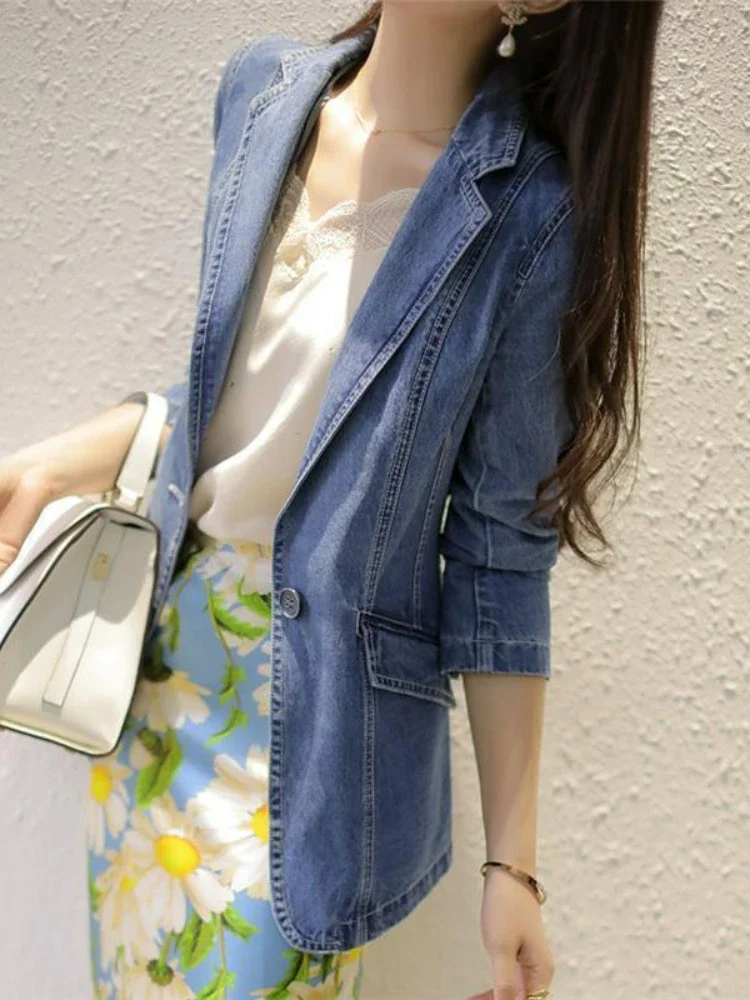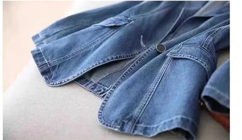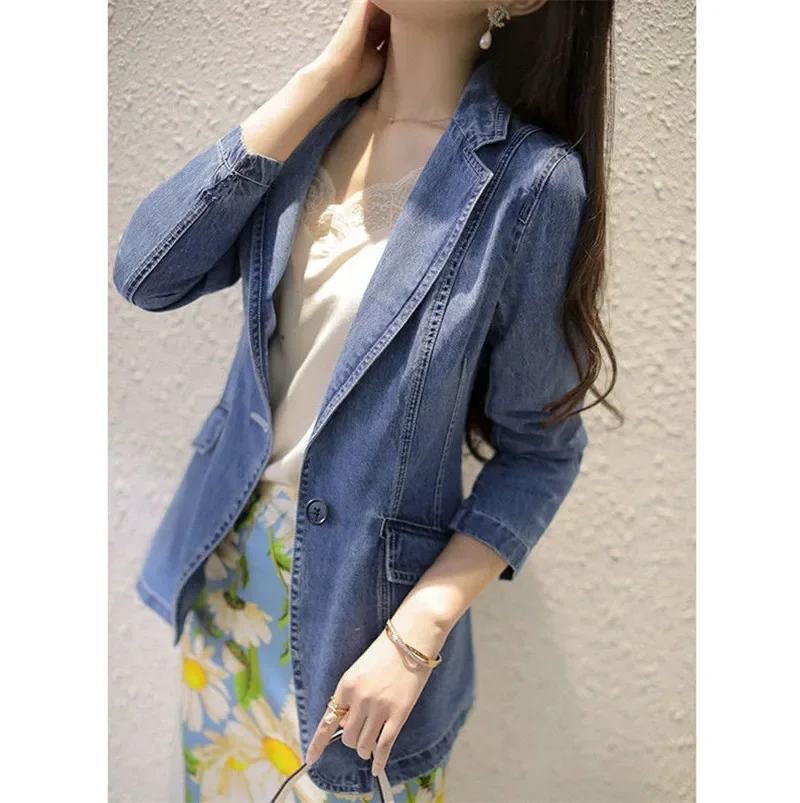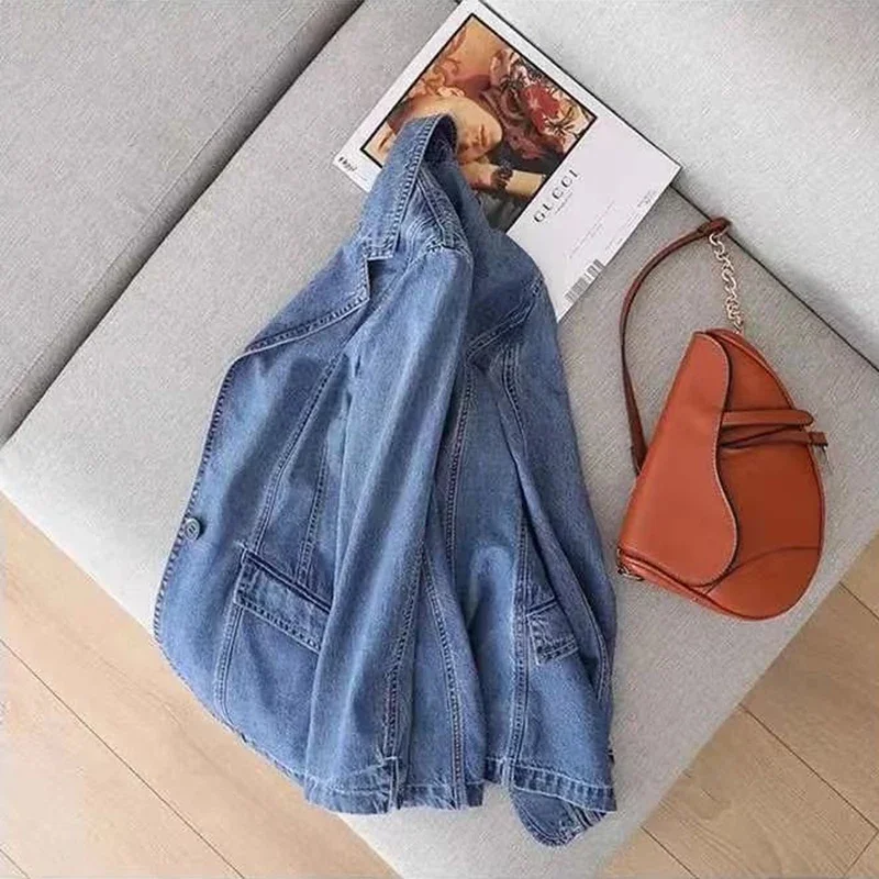 Vintage Suit Women Jeans Jacket Casual Tops Loose Short Denim Blazer Outwear Female Cowboy Basic Coat New Spring Autumn B420