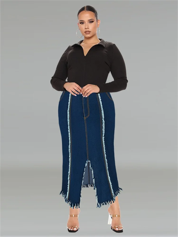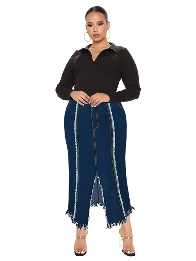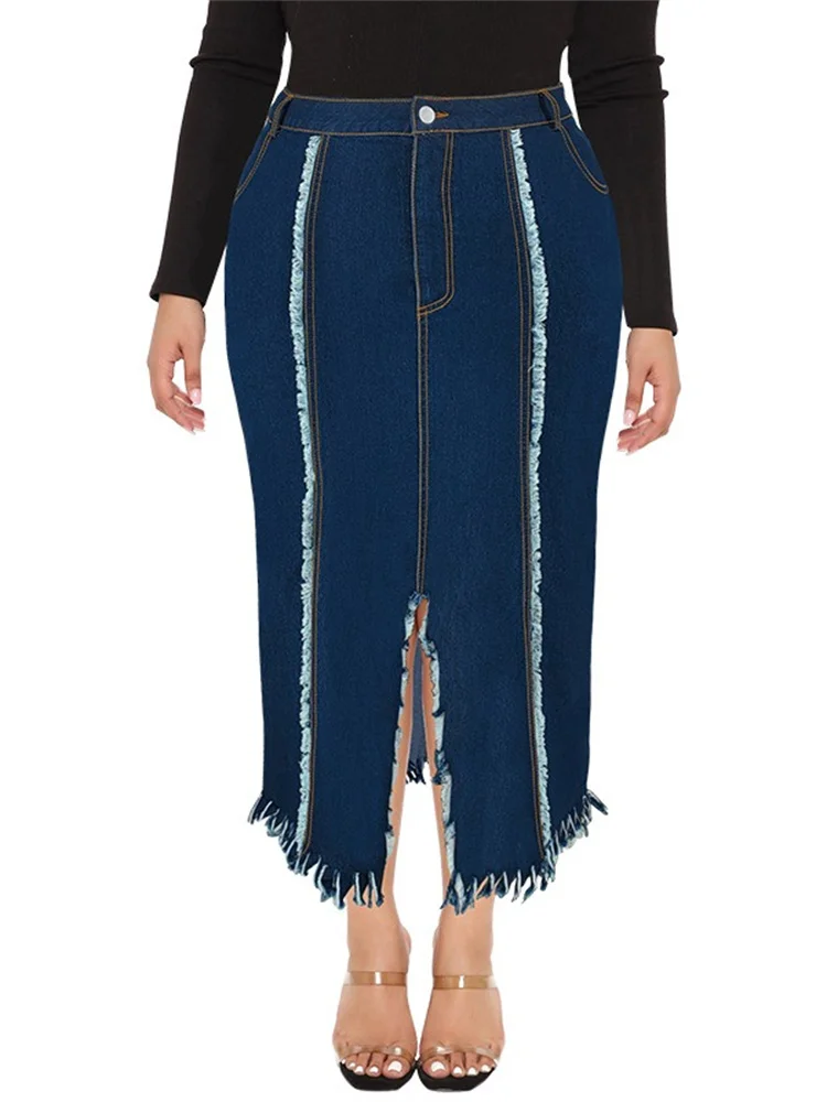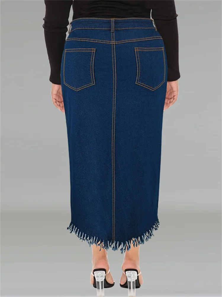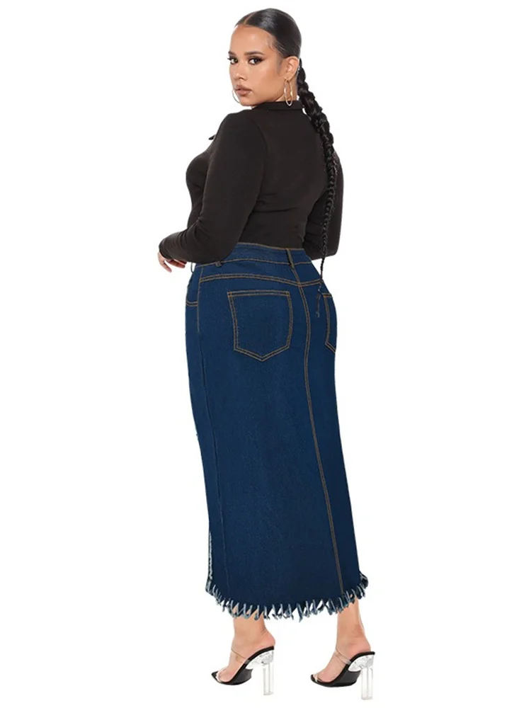 Wmstar Plus Size Only Denim Skirts Maxi Sexy Medium Stretch Long Flounce Skirt Wholesale Dropshipping 2024 Women's Clothing